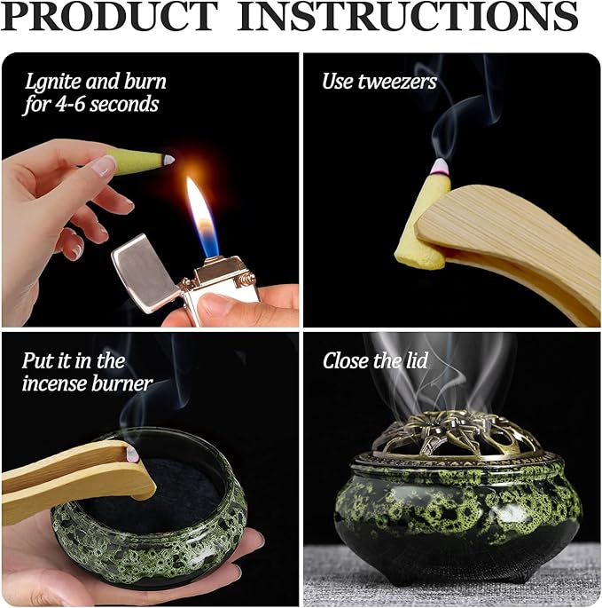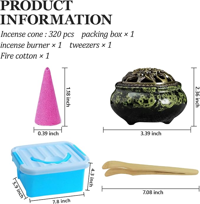 - 【 Incense cone pack】These special incense cones set are used with an incense burner, we give free ceramic incense burner and tweezers (easy to get incensed without hurting your hands).