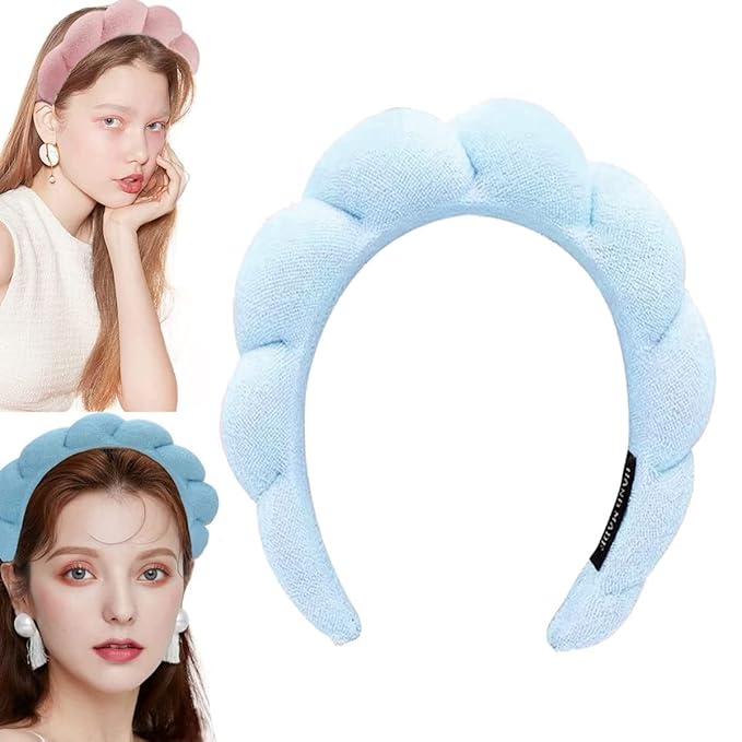 Headband for Spa, Makeup Removal, Shower, and Skincare - Sponge Makeup Headband (Blue)