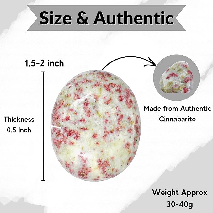 - Large Cinnabarite Palm Stone : Our cinnabarite palm stone is large that perfectly fits in your palm and perfect for those who appreciate crystals and healing stones. This authentic cinnabarite stone is ideal for reiki supplies and other spiritual practices, making it a thoughtful birthday gifts for men and women.