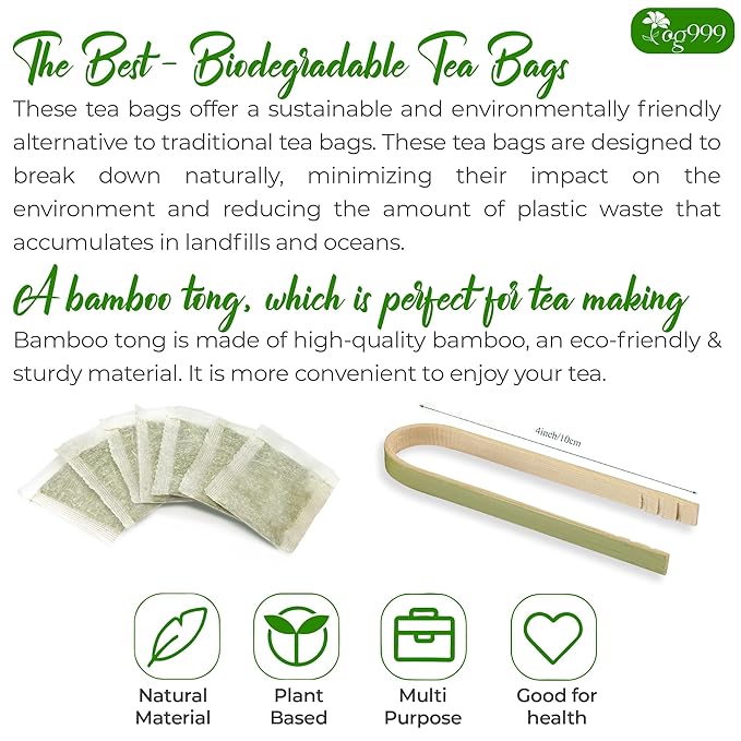 - ☘️ BIODEGRADABLE TEA BAG - NATURAL MATERIAL: The tea bags are made of natural corn fiber, which is friendly for the environment. No Strings. No Wrapped. No Staples. No Adhesive. No Bleach. No Dyes - 100% Safety.