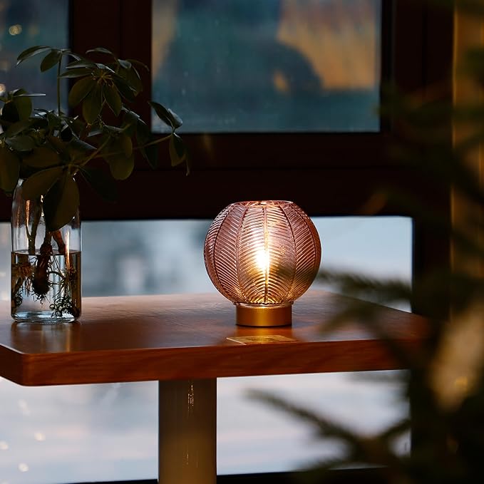 - 🌿【MODERN GLASS BATTERY LAMP】 Our battery operated lamp is made of high quality glass, which features a modern elegant style and is suitable for all styles of home decor. There are 5 colors available to choose — Red, Green, Amber, Gold, Grey. You can decor your home by putting this modern lamp any where and when you turn on the cordless lamp, it emits beautiful luminous light and adds romance to your home. Must be a nice addition for your bedroom and hallway...