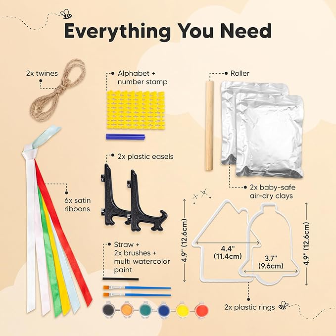 - All-Inclusive Kit - Our Trove Baby Handprint Ornament Kit for babies offer 2 baby-safe airdry clay, 2 shaped rings, acrylic paints, 2 paint brushes, 6 satin ribbons, 2 twig strings and alphabet stamps. DIY personalized newborn gifts for your babies!