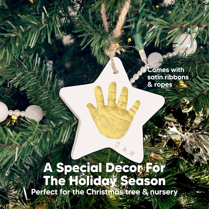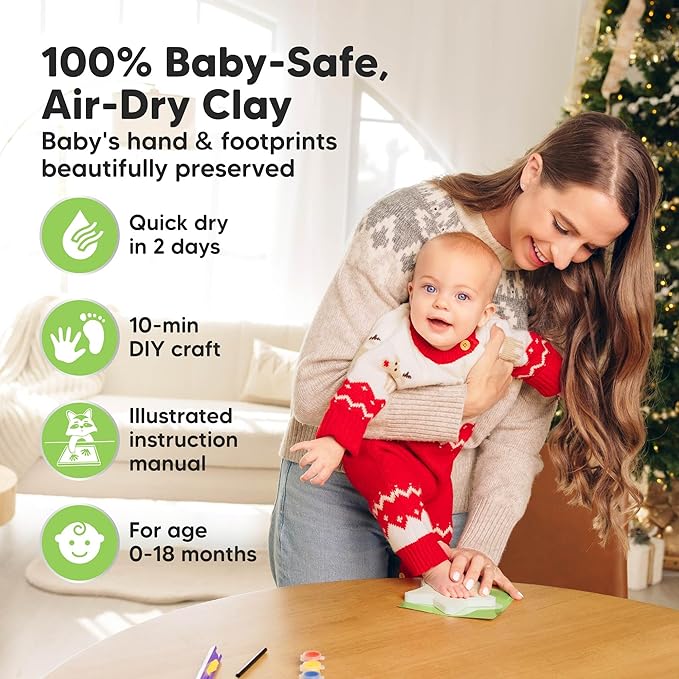 - Food-Grade Clay - Trove Baby's First Christmas Ornament for newborns features 100% baby-safe air-dry clay, ideal for preserving your baby prints. Our high-quality material ensures durability, maintaining your baby handprint kit in prime condition for years.