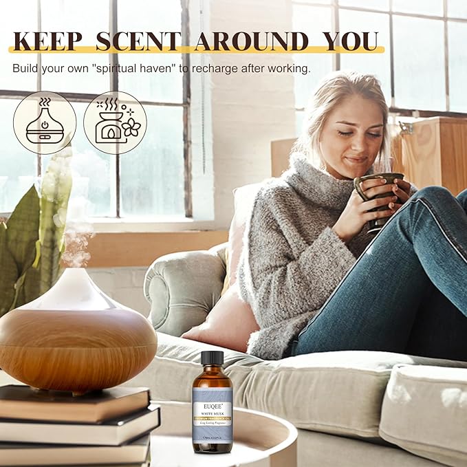 EUQEE White Musk Fragrance Oils for Home Aromatherapy, Premium White Musk Essential Oil with Glass Dropper for Diffusers, Candle & Soap Making, Bath Bombs (2.02 Fl oz/60 ml)