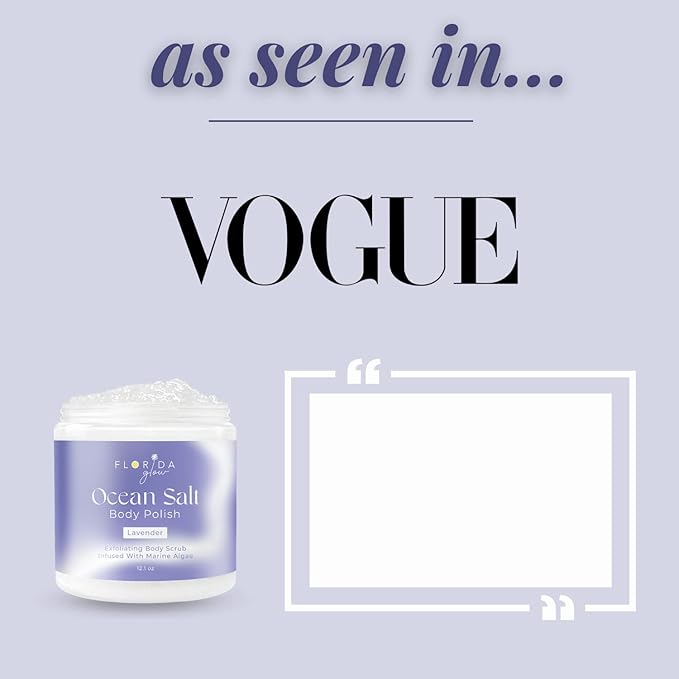 Sea Salt Body Scrub by Florida Glow - Ocean Salt Body Polish Infused with Marine Algae - Exfoliating Face and Body Scrub - to Tackle Acne and Scars for Smooth Soft Skin (Lavender, 12.1 oz)