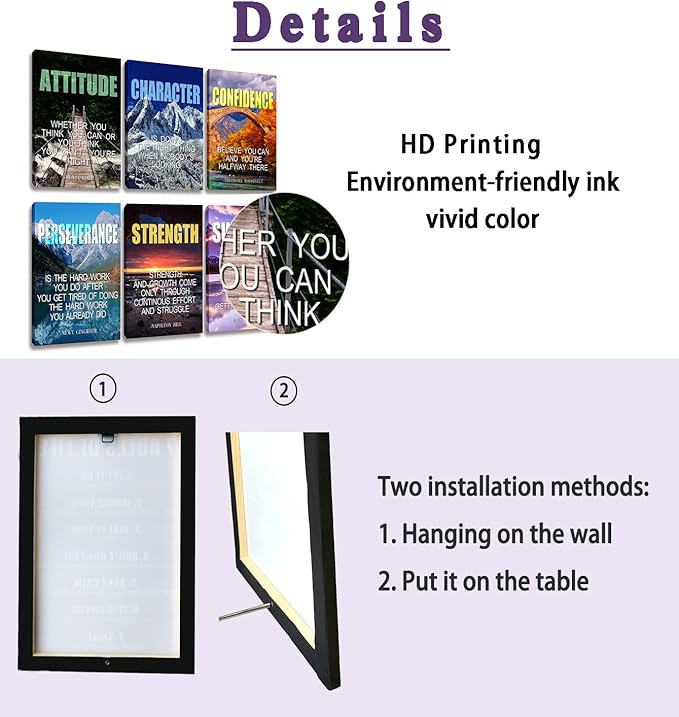 Inspirational Quotes Motto Wall Art,Motivational Office Wall Art Decoration Painting, Suitable for Library, School, Gym,Office, Living Room,Home Deco,Tabletop/Hanging,| 6-pack(38 x58 cm) Framed 3