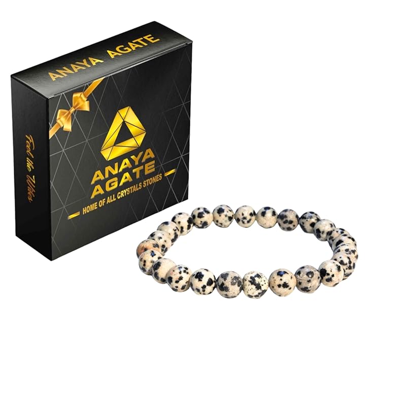 Dalmatian Jasper Bracelet, Healing Crystal Bracelet for Women and Men, 8mm Round Beaded Bracelet for Spiritual Healing, Protection, Positive Energy, Elastic Adjustable Size Gemstone Bead Bracelet