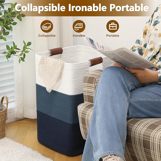 Laundry Hamper 96L Extra Large Laundry Basket, Woven Blanket Basket, Cotton Woven Storage Hamper with Handles for Living Room, Large Baskets for Pillows, Blankets, Clothes-Gradient Blue