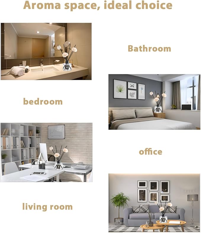 - Modern Air Freshener-Scent your space with natural jasmine, freesia fragrance to eliminate odors. Place it in the bedroom, living room, bathroom, kitchen, hallway and office to instantly freshen the air and add décor.