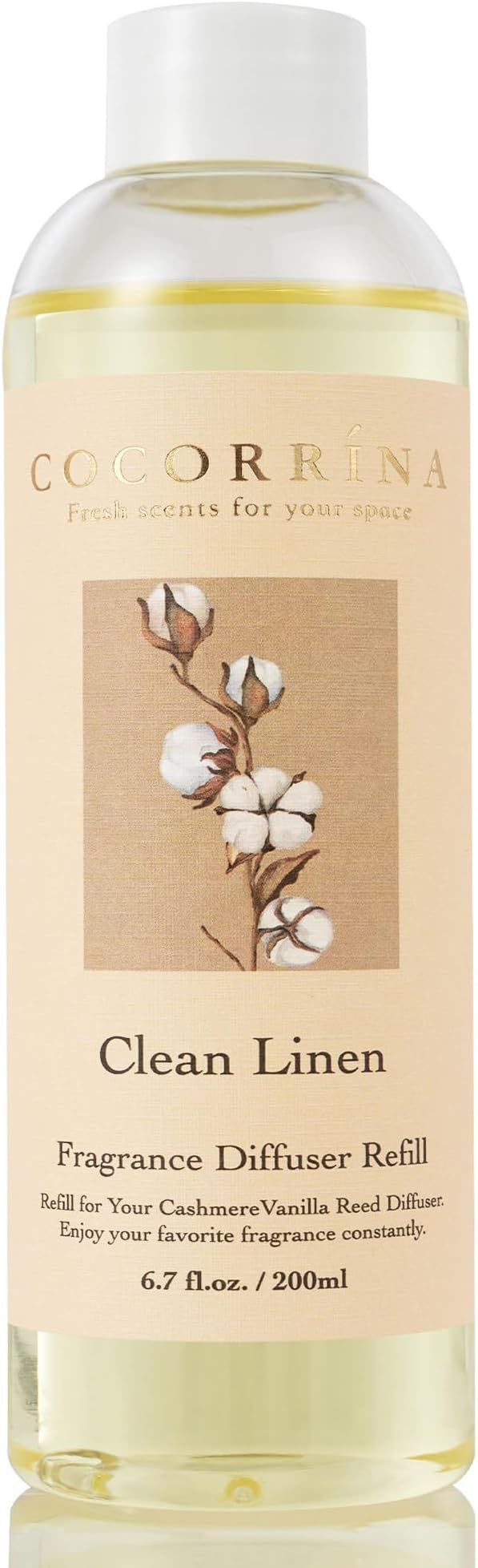 Cocorrína Reed Diffuser Refill - Clean Linen 6.7 oz. Scented Oil for Reed Diffuser Home Fragrance for Bedroom, Bathroom Home Decor