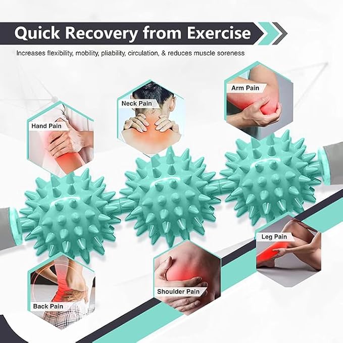 - ā 3 MASSAGE BALLS FOR BODY RELAX: Spike nodules balls provide deep tissue massage with acupoints stimulation to promote blood circulation and help reduce muscle pain, soreness, pain and nodules. Used at least once daily for around 5 to 10 minutes per each target skin area, helps loosen muscles before and after workouts to reduce risk of injury