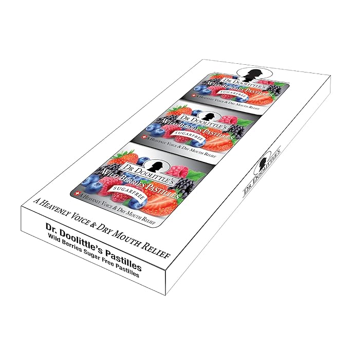 DOOLITTLE Dr Sugar Free Soft Fruit Pastilles for Voice and Throat Gift Set, Wild Berries Flavor, 2.12 Ounce Tin, Approximately 25 Count Package, 3 Tin