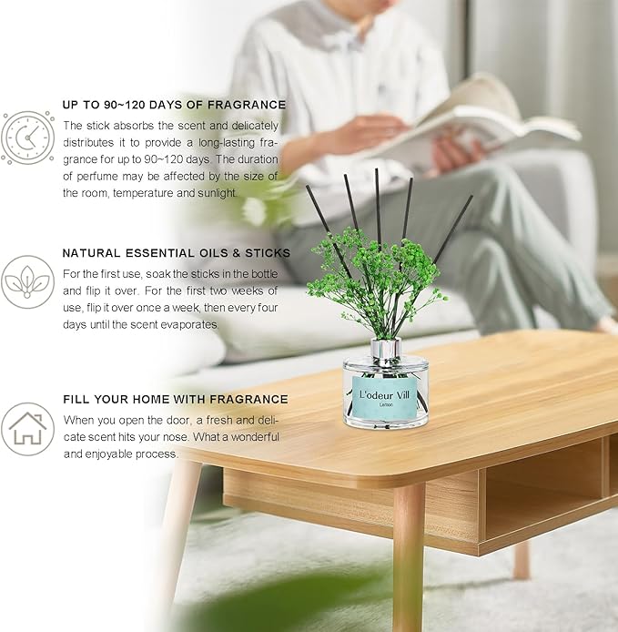 - 【Long-lasting Scent】Enjoy up to 90 days of fragrant aroma. Using our reed diffuser set is quick and convenient, with minimal maintenance. You can choose to add or remove the number of reed sticks to match your taste. When the fragrance weakens, simply turn the reed sticks upside down or replace them with new ones.