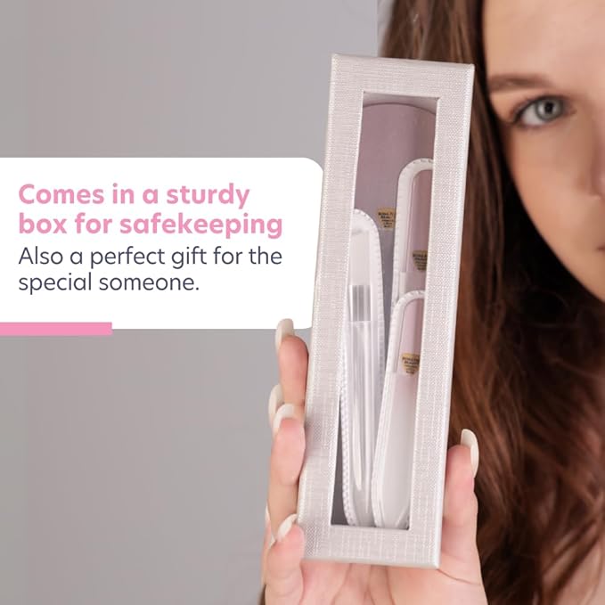 - BONA FIDE BEAUTY GIFT SET: a luxurious gift set for her in a theme of rose-gold! Pamper her with a Czech glass foot file, two glass nail filers, and a best-selling glass cuticle pusher. Handcrafted with precision, these nail care tools offer salon-quality results. With a ready-to-go gift box, it’s the perfect package for flawless nails and baby soft feet.