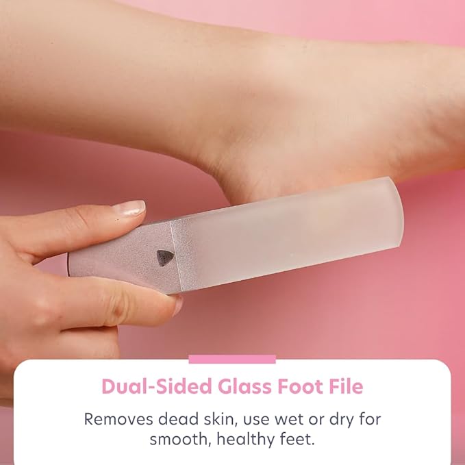 - CZECH GLASS FOOT FILE: give the gift of blissful foot care with a rose gold Bona Fide Beauty Czech glass foot file. She can indulge herself with a relaxing heel buffer to exfoliate dead heel skin, reveal smooth soles, and enjoy salon-like results. Durable, easy to clean, and eco-friendly, it is the go-to foot care tool for achieving baby soft feet.