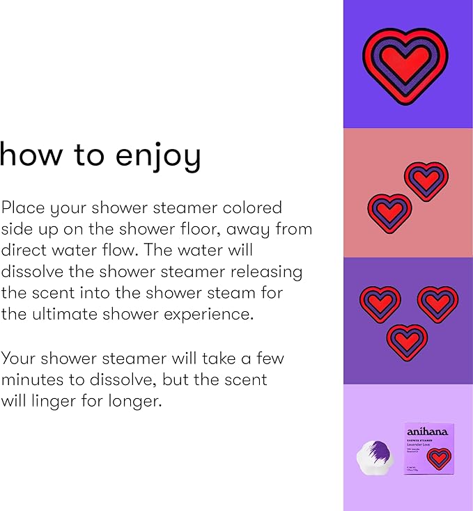 ANIHANA Shower Steamers 4 Pack with Lavender Essential Oils, Paraben Free, Cruelty Free, Refreshing Lavender Love Scent, 1.76 oz Each