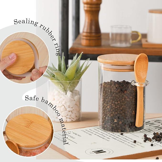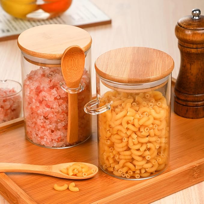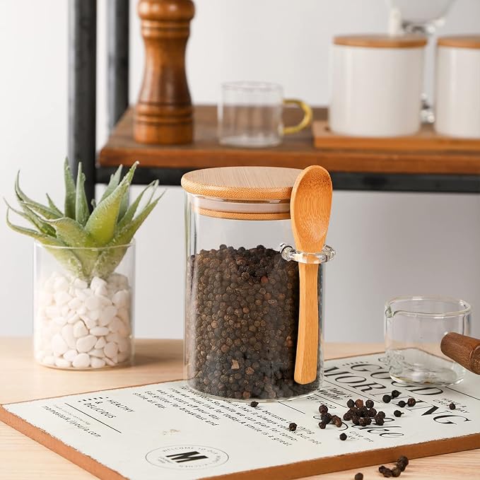 WHJY Glass Glass Jar with Lid and Spoon, Airtight Glass Jars bamboo lids, overnight oats jars, Dog Treat Jar for Pet, Glass Candy Cookies Coffee Canister Jar Bath Salt Container - 20 oz (1)