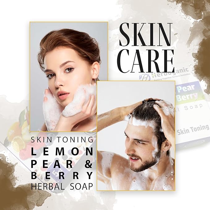 - Nature’s goodness in every bar: Our skin-toning and refreshing Lemon, Pear and Berry Herbal soap is crafted from the finest ingredients, including natural extracts from these fruits. This dynamic combination works wonders to enhance your skin's tone and texture.
