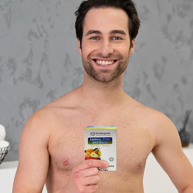 - Nourishing hydration for all skin types: Our Lemon, Pear and Berry Herbal soap are expertly formulated to provide deep, long-lasting hydration and nourishment to your skin leaving it feeling soft, smooth and rejuvenated. Whether you have dry or oily skin our herbal soap is designed to deliver the perfect balance of moisture and nutrients your skin needs to look and feel its best.