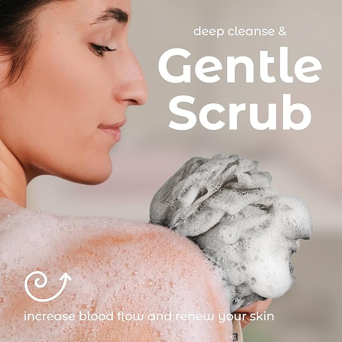 - PREMIUM EXFOLIATING LOOFAH – Indulge in a luxurious bath time with our premium quality loofahs. Our finely woven mesh with a higher cell count gently exfoliates, leaving your skin soft and smooth. The strong knot design and high-quality materials ensure a long-lasting bath sponge experience