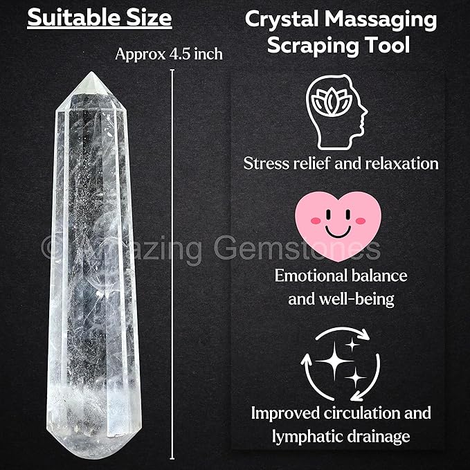 Amazing Gemstone Clear Quartz Crystal Wand Massage Stick - Pelvic Wand Gua Sha for Adults - Crystals and Healing Stones Massage Wands for Adults Gifts (Pointed)