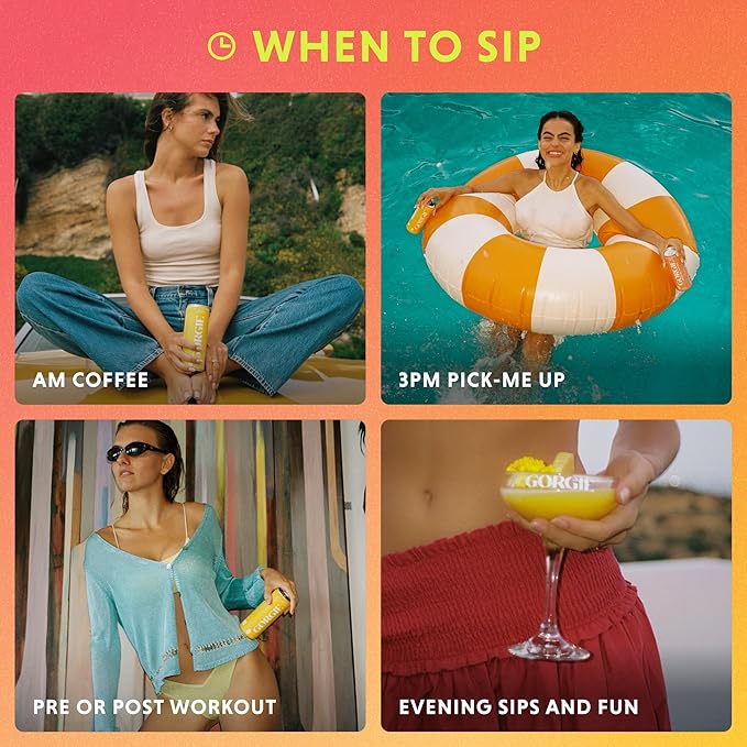 - MIX IT UP: Our bevs have a playful side too! GORGIE's light and natural flavors make them a great mixer for cocktails and mocktails, providing an energizing twist to your favorite drinks.