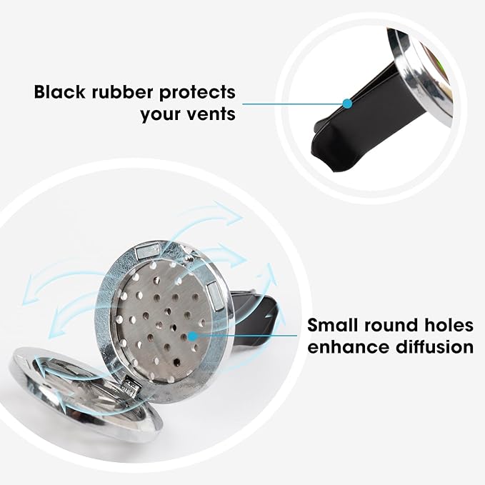 - 【High Quality Material】Essential oil car diffuser vent clip made of high quality alloy, lighter than other vent clips. Car vent air freshener clips work simple and portable. The aroma around you, makes your keep alert when drive, give you a relaxing journey, bring you good mood.