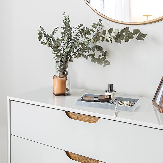 - 【Multifunctional/Multipurpose】Our bathroom vanity tray can be used for multiple purposes, mainly for dresser, counter, bathroom, bedroom, kitchen, desk, toilet tank top,etc. Kitchen soap tray can organizer small items, such as perfume, candle, jewelry, Trinket, Ring, watch, key, soap, soap dispenser.