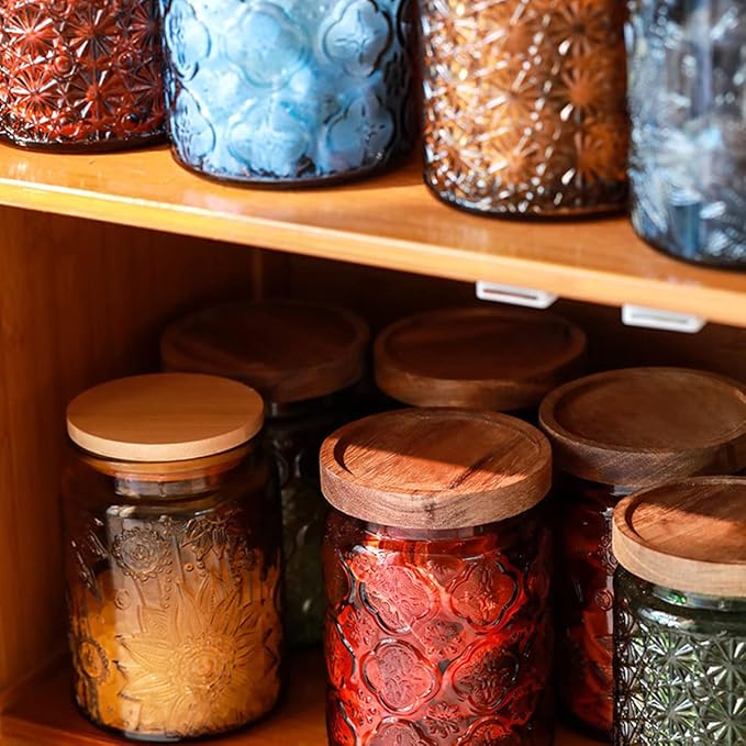 - QUALITY MATERIALS: Our food storage glass jar is made of high quality thickened glass, with rubber ring inside the lid, the appearance of the airtight glass jar is made of vintage embossed design concept, exquisite and beautiful