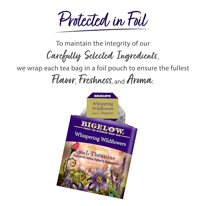 Bigelow Whispering Wildflowers Herbal Tea Plus L-Theanine, Supports Stress Relief & Relaxation, Caffeine-Free, Kosher, Gluten Free & Non-GMO, 18 Tea Bags, 0.9 Ounce (Pack of 6)