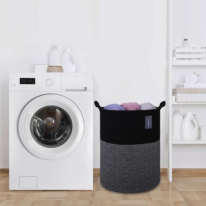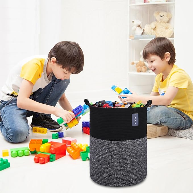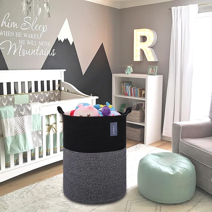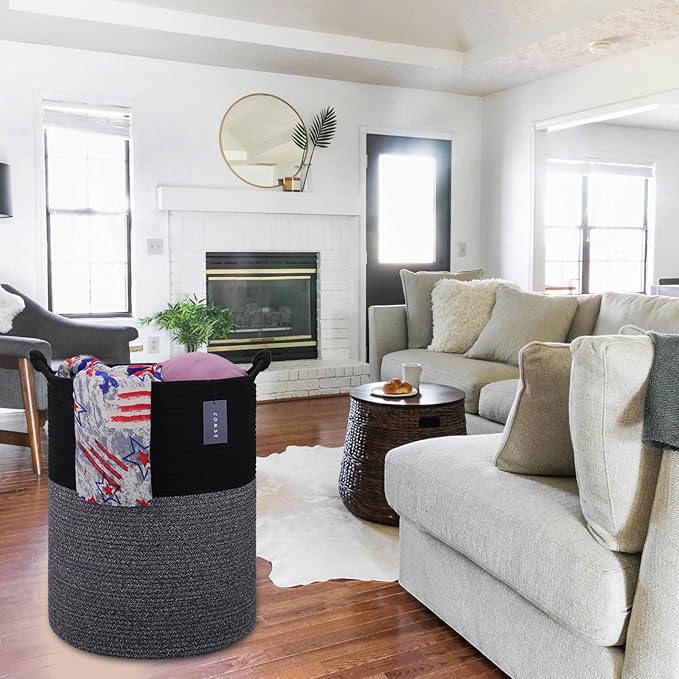 COMSE Extra Large Blanket Basket, Tall Woven Storage Basket, Nursery Hamper, 15.7”x 21.7”, Cotton Rope Laundry Hamper for Toys Clothes Towels, Black