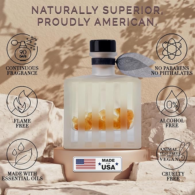 - BOUTIQUE QUALITY, AMERICAN-MADE – Handcrafted in small batches by our family-owned perfumery in the USA, each reed diffuser is made with clean ingredients and long-lasting fragrance. We never use harsh chemicals—just premium, room-filling scent that looks as good as it smells. A safe, stylish way to elevate your space with artisan care.