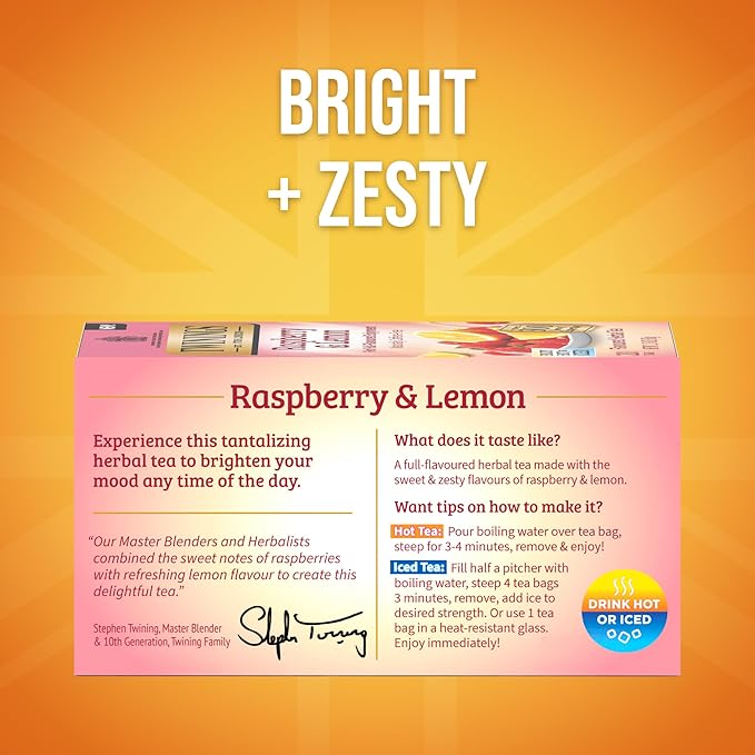 - TASTING NOTES: A full-flavoured herbal tea made with the sweet & zesty flavours of raspberry & lemon