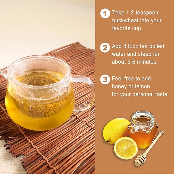 - More Simple Edible Ways: Brew our black Tartary buckwheats with 300-400ml of 212°F (95°C) water, steep for 5-6 minutes. You can also combine buckwheat with other ingredients to create a salad or other flavorful dishes after drinking the buckwheat tea