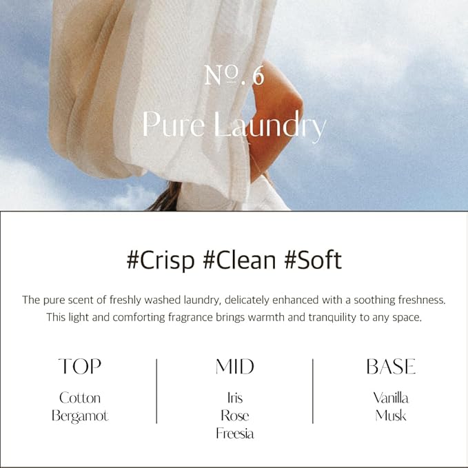 - PURE LAUNDRY SCENT: Invoke the clean, comforting smell of Pure Laundry. This scent mimics the fresh, soft fragrance of clothes bathed in spring sunlight, offering a pure and soothing atmosphere throughout your home.