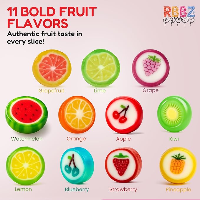 Fruit Slices Candy - Hard Candy Bulk 1 lb Bag of Individually Wrapped Small Candy Fruit Slices (approx. 118 pcs) Hard Candies Assortment - Great for Candy Buffet - Office Candy - Treat Bags