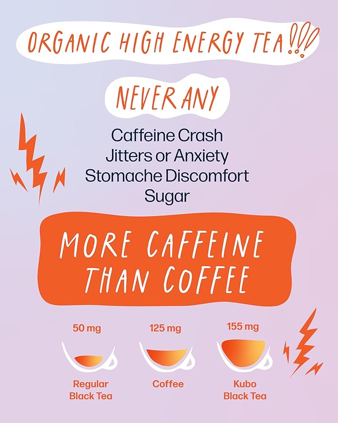 - CONVENIENT ECO PACKAGING: This energy tea high caffeine has thoughtfully designedplant-based pillow tea bags offer superior brewing for optimal extraction of caffeine and beneficial compounds. Each portioned bag ensures consistent 155mg caffeine dose and eliminates guesswork. Packaged in fully compostable materials that break down naturally, reflecting environmental stewardship and allowing conscious consumers to minimize their ecological footprint while enjoying daily tea.