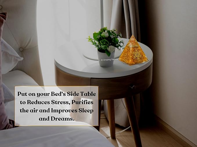 Amazing Gemstone Organite Orgone Pyramid Extra Large 105 MM - Orgone Energy Pyramid with Citrine Crystals and Healing Stone - Orgonite Pyramids Crystals and Positive Energy