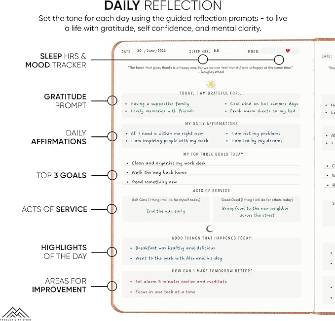 - ā RESEARCH BACKED & THOUGHTFULLY DESIGNED: This self love journal for women and men includes prompts is designed to help you start each day with a grateful heart and shift your perspective towards the positive. The ultimate research-backed self care planner and daily journal with prompts.