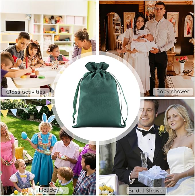 Green Satin Bags with Drawstring, 30Pcs 4x6 Small Gift Bags, For Kids Classroom, Wedding, Birthday, or Halloween Party, Rubics Cube, Candy, Dice, Coin, for Small Business