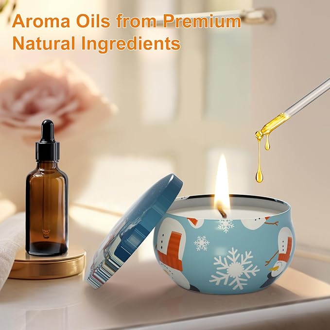 - Exquisite jar & long-lasting time: Each candle has a jar with exquisite Christmas scenes patterns, suitable for decorating your home or storing some little things once used up. Every scented candle contains 2.5 oz soy wax and can last 15 to 20 hours and the 12 pack scented candles totally burn time up to 240 hours. Just enjoy the long-lasting fragrance with pleasure