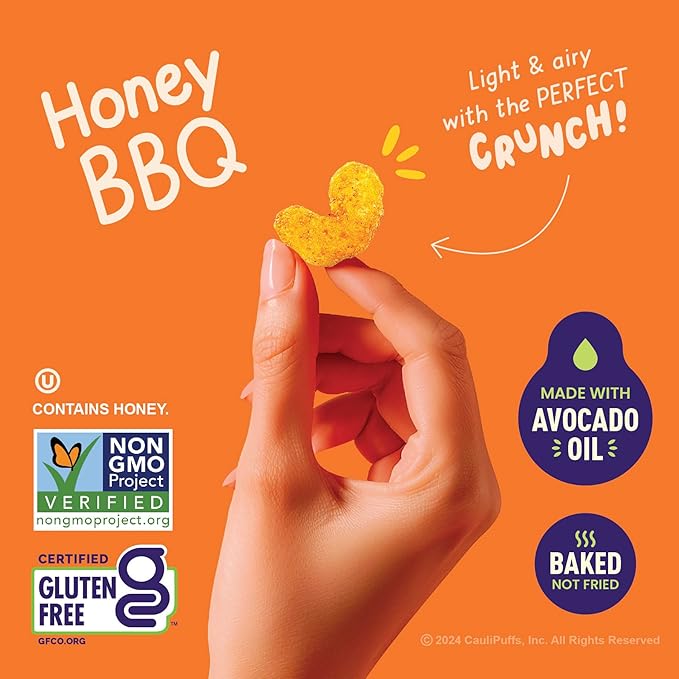 CauliPuffs - Corn, Rice, and Cauliflower Gluten Free Puffed Snack (15 X 0.75oz Bags, Honey BBQ)