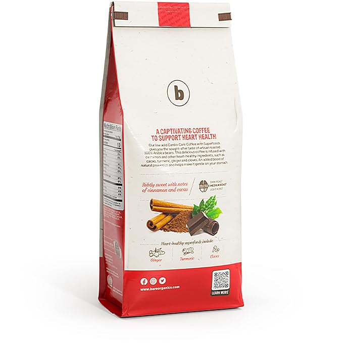 Cardio Care Organic Ground Bagged Coffee – Probiotic Coffee with Cacao, Ginger, Turmeric & Cinnamon – Healthy Superfood, Mold Free, Vegan, Gluten Free 10 oz