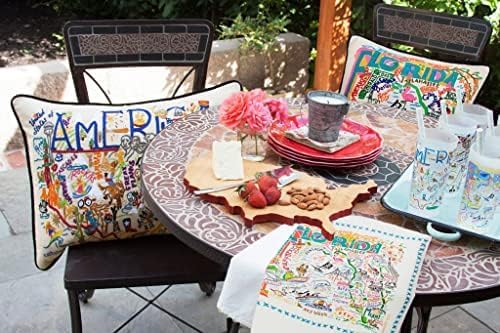 - Catstudio GEOGRAPHY collection has US State drinking glasses, dish towels, zip pouches and other home decor accessories featuring your favorite states, cities, Colleges, and more! Includes (1) Hand Embroidered Throw Pillow, 20 x 20in. Dry clean only.