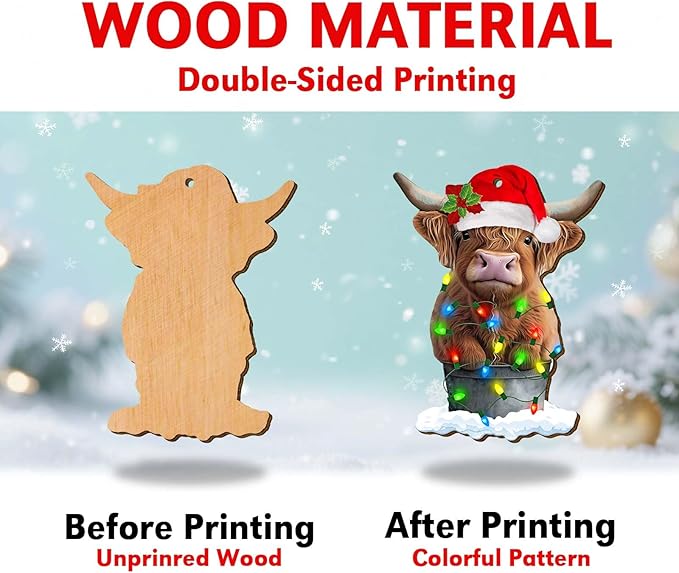 - Material: Crafted from high quality wood, our christmas ornaments are odorless and safe. Double-sided printed design with colorful fun animal prints. High quality materials ensure durability and will last a long time.