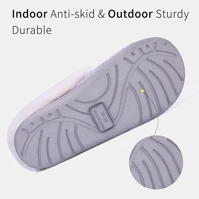 - Classic Winter Knit Slippers: Featuring a breathable chenille knit uppers design, along with high-quality and comfort fluffy faux fur collar trim, lined with thickening fleece, the house slippers wrap your feet very well, keep your feet nice and toasty whether in socks or bare feet.