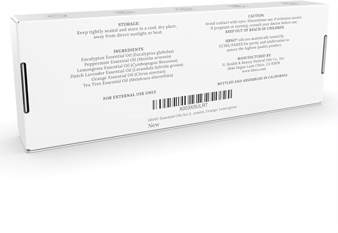 HBNO Essential Oils Set (10ml) - Top 6 Essential Oils. Ideal for Aromatherapy, Soap Making, and Skincare and More - Lavender, Eucalyptus, Tea Tree, Peppermint, Orange, Lemongrass