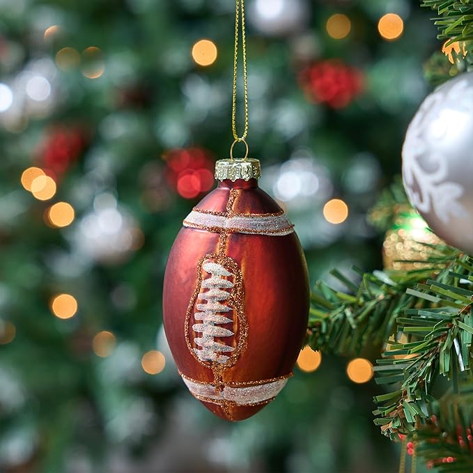 - MORE CHOICE, MORE SMILES. With our cool Christmas glass ornament, you'll instantly infuse your holiday decorations with the joy and warmth of Christmas. The football theme adds a playful touch, capturing the spirit of the season and delighting sports fans of all ages. It's a delightful addition that will make your Christmas tree truly stand out.