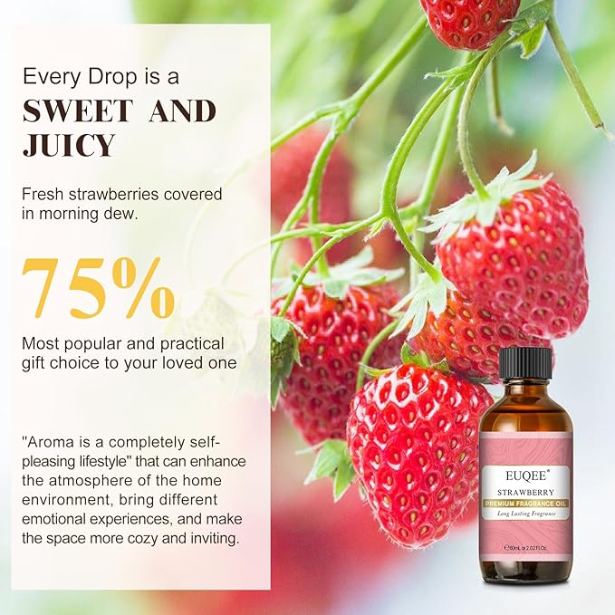 - 【Wonderful Scent】Strawberry Fragrance oil has a very sweet, juicy, syrupy aroma. It is an exquisite smell of ripe and fresh, mouthwatering strawberries.