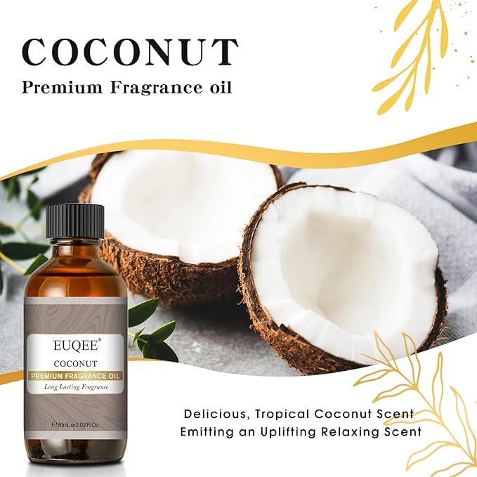 EUQEE Coconut Fragrance Oil, Premium Essential Oil Scented Oil with Glass Dropper for Aromatherapy, Soap Candle Making - 2.02 Fl oz/ 60ml
